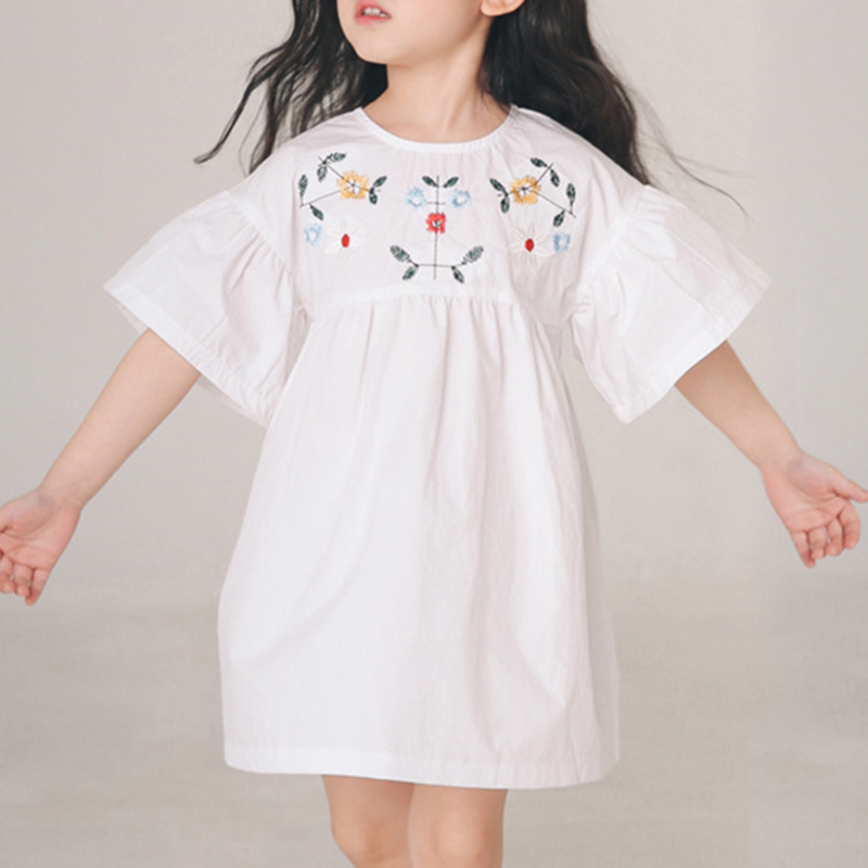 Flower Embroidered Girls Short Sleeve Vintage Dress For 4Y-15Y