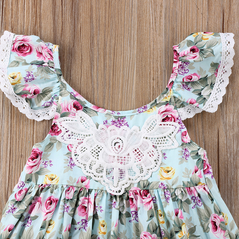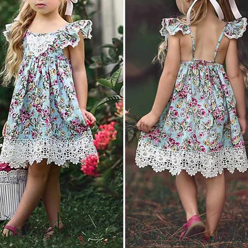 Flower Printed Toddlers Girls Kids Sleeveless Summer Lace Backless Dresses