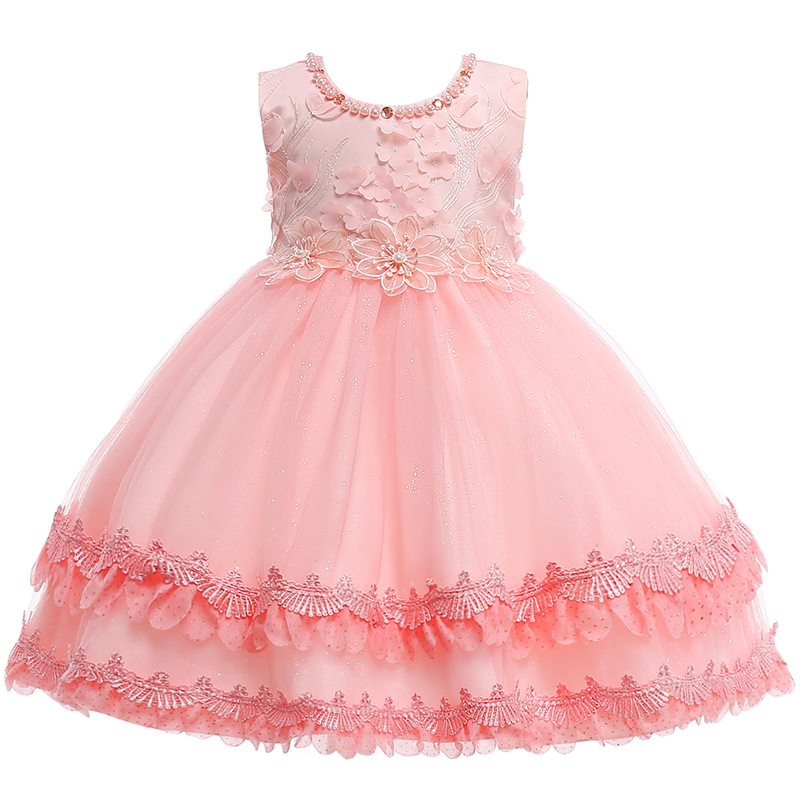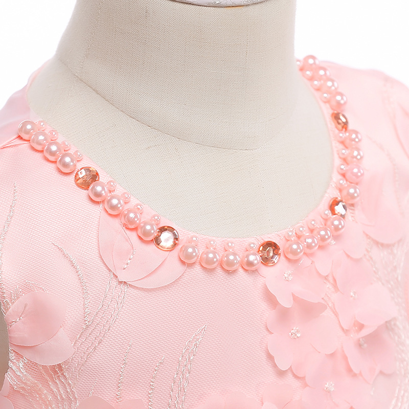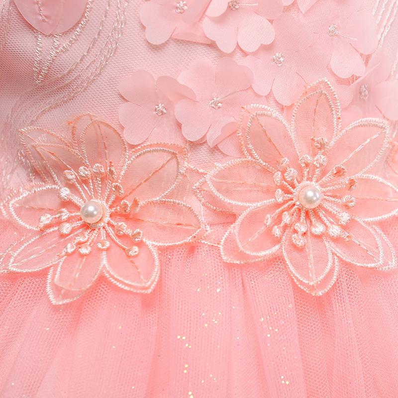 Diamond Toddler Girls Flower Appliques Lace Wedding Princess Dress For 4Y-13Y