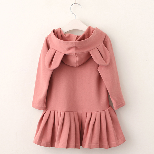 Cute Rabbit Bunny Pattern Hooded Girls Dresses Casual School Kids Girls Clothes