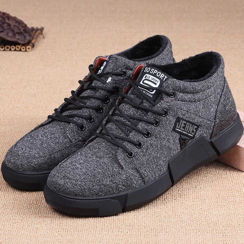 Men Canvas Comfy Trainers Warm Plush Lined Casual Ankle Boots