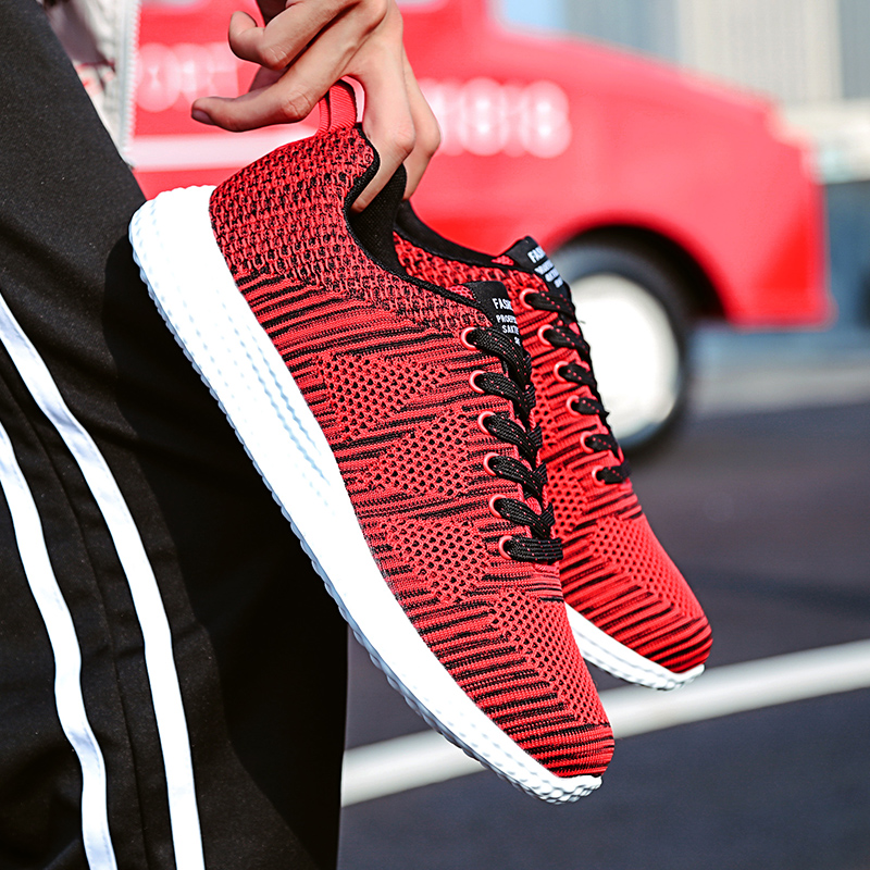 Large Size Men Knitted Fabric Lace Up Sport Running Casual Sneakers