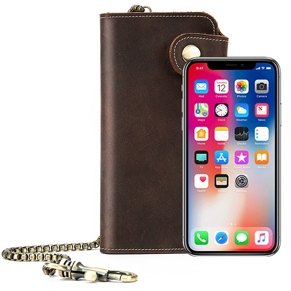 Men Genuine Leather Multi-function Plain Wallet Card Holder Phone Bag