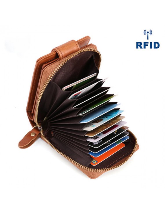 Men Genuine Leather RFID Anti-magnetic Vintage Casual 15 Card Slots Wallet