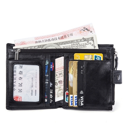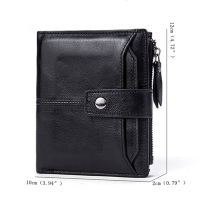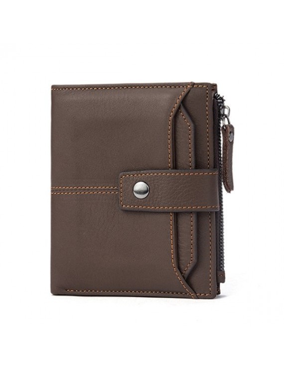 Men Genuine Leather Card Slots Wallet Zipper & Hasp Short Wallet Vintage
