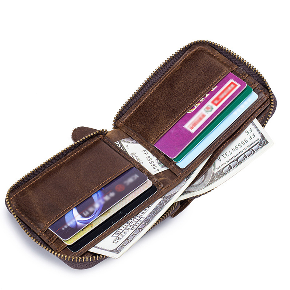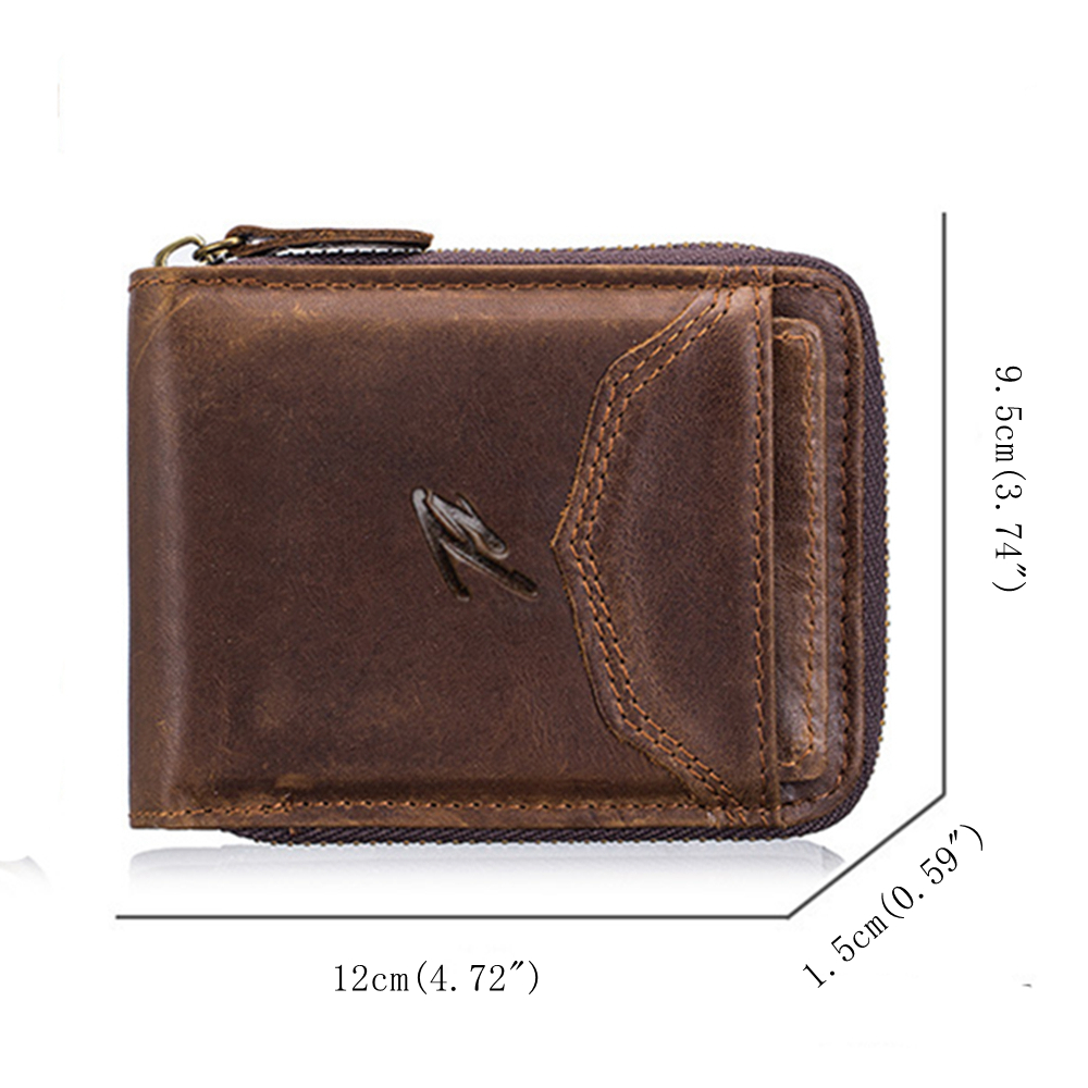 Genuine Leather Retro Multifunction Wallet Casual Coin Zipper Bags For Men