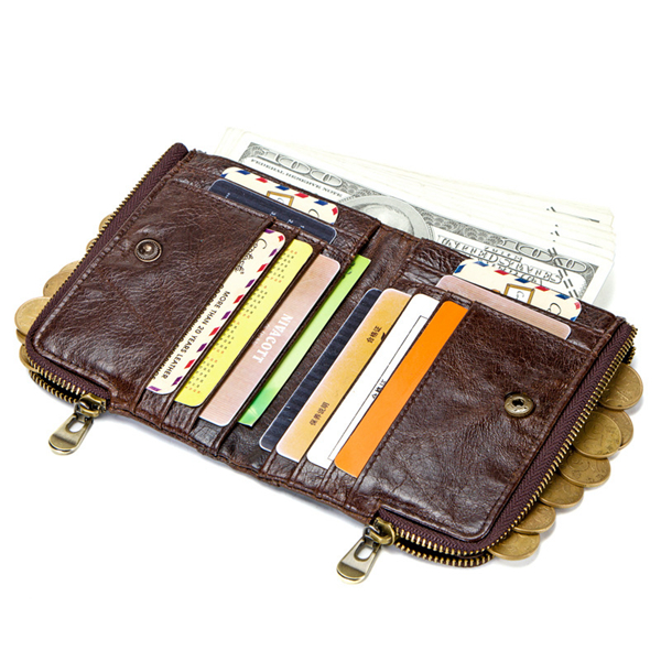 RFID Genuine Leather Casual 10 Card Slot Multifunction Wallets Double Zipper Men Coin Bag