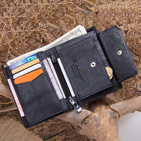 Vintage Genuine Leather Large Capacity Coin Bag Trifold Wallet For Men