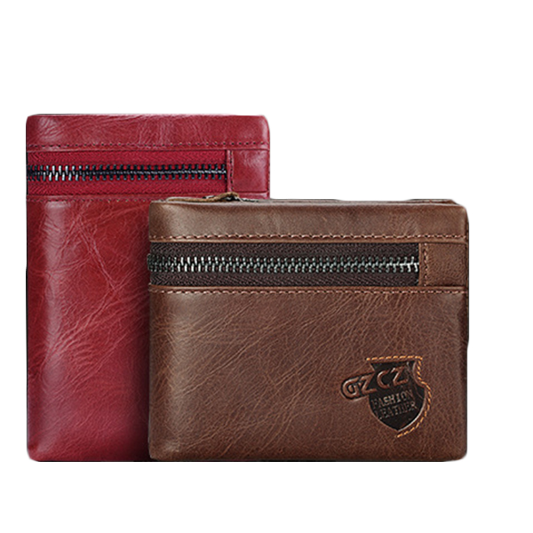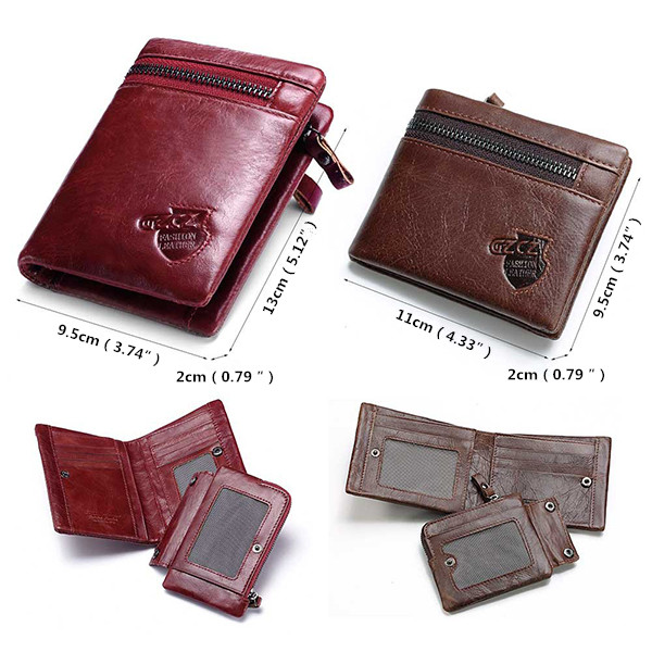 Vintage Genuine Leather 11 Card Slots Coin Bag Trifold Wallet For Men