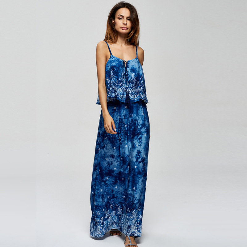 Bohemian Print Spaghetti Strap V-neck Maxi Dress For Women