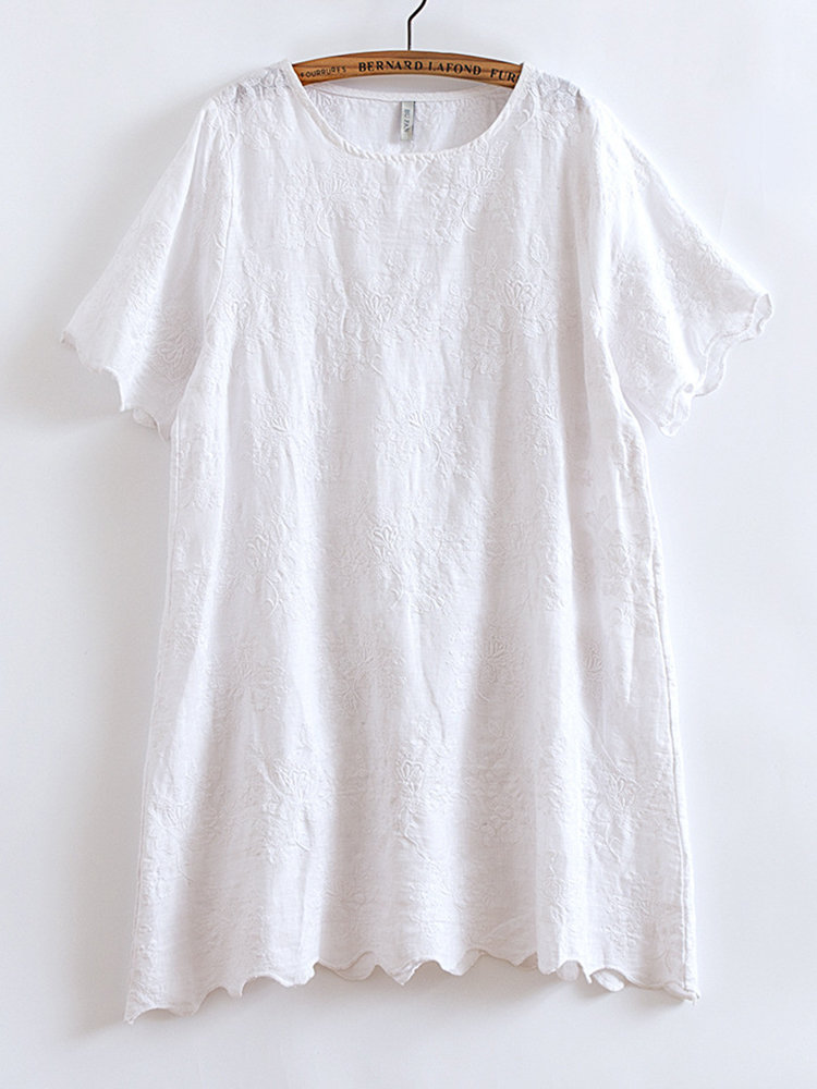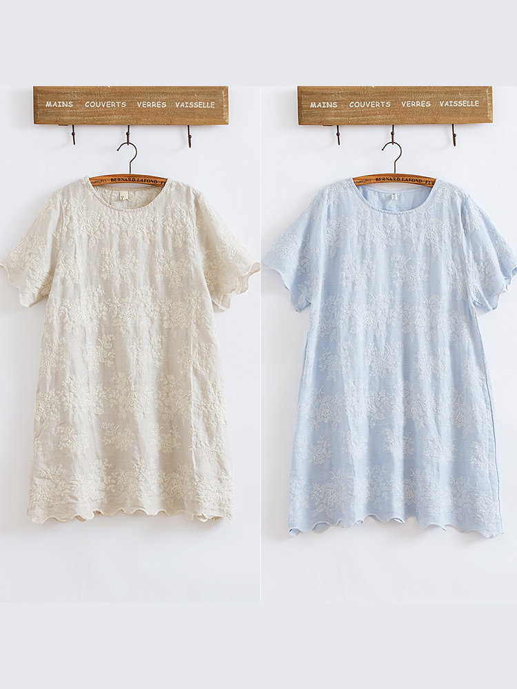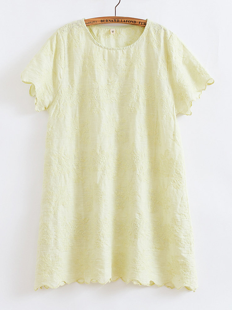 Short Sleeve O-Neck Embroidery Wave Edge Casual Dresses