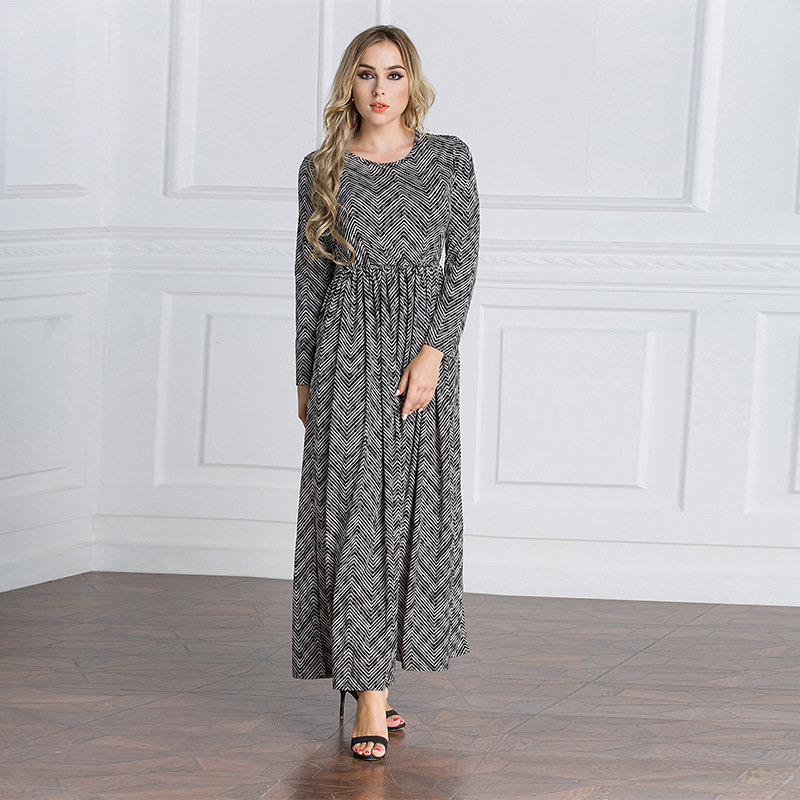 Vintage Women Muslim Print Maxi Dresses