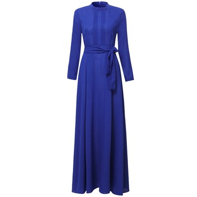 Women Elegant Bandage Stand Collar Long Sleeve Maxi Dress