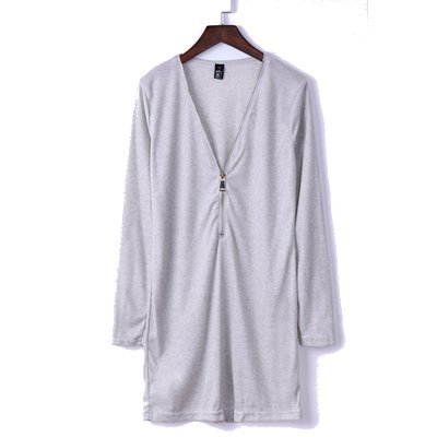 Women Sexy Zipper Bodycon Long Sleeve V-neck Mini Dress