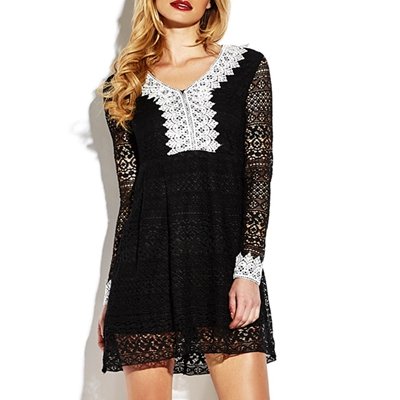 Sexy Lace See-through V-neck Long Sleeve Mini Dress For Women