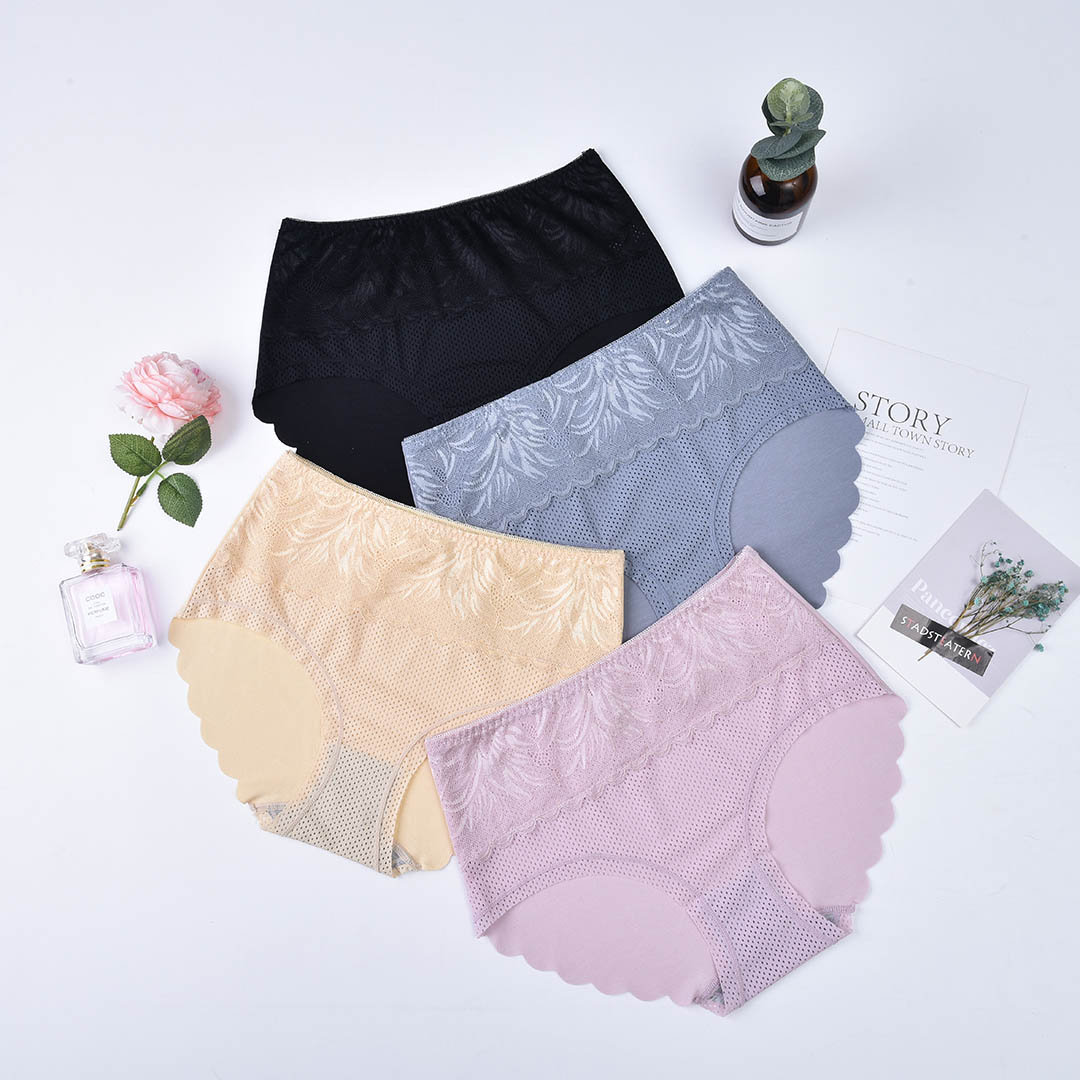 Seamless Ice Silk Lace Breathable Mid Waisted Panties