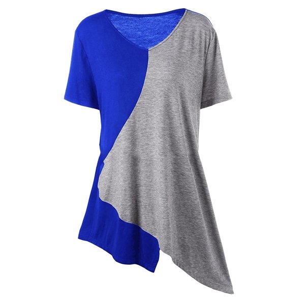 Casual Irregular Patchwork Short Sleeve V-neck Women T-shirts