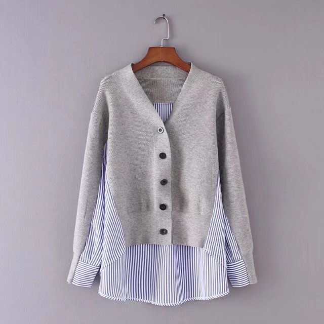 Casual Stripe Patchwork Irregular Long Sleeve Blouses For Women