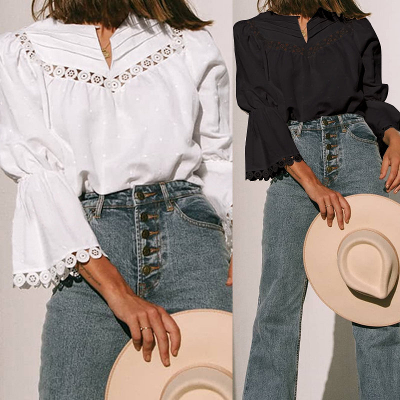 Chic Hollow Out Solid Color 3/4 Sleeve Blouse