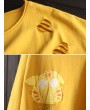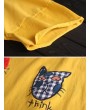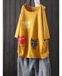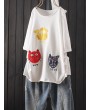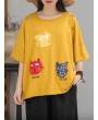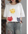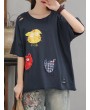 Cat Patch Embroidered Half Sleeve Distressed T-Shirt