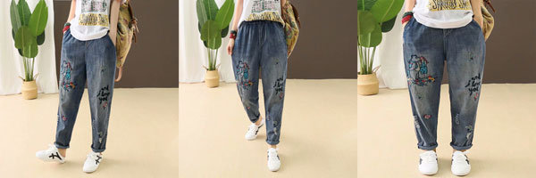 Casual Washed Old Embroidery Beautiful Letters Hole Loose Jeans