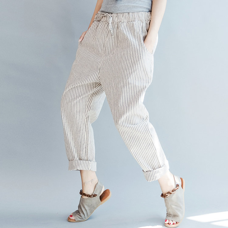 Loose Drawstring Waist Stripe Print Casual Harem Pants