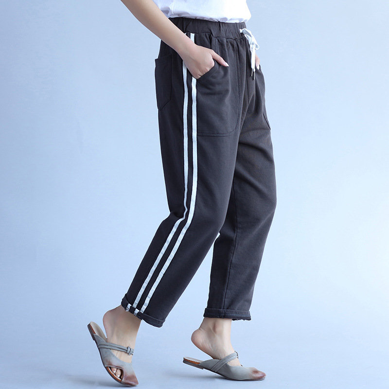 Casual Stripe Drawstring Waist Women Pants