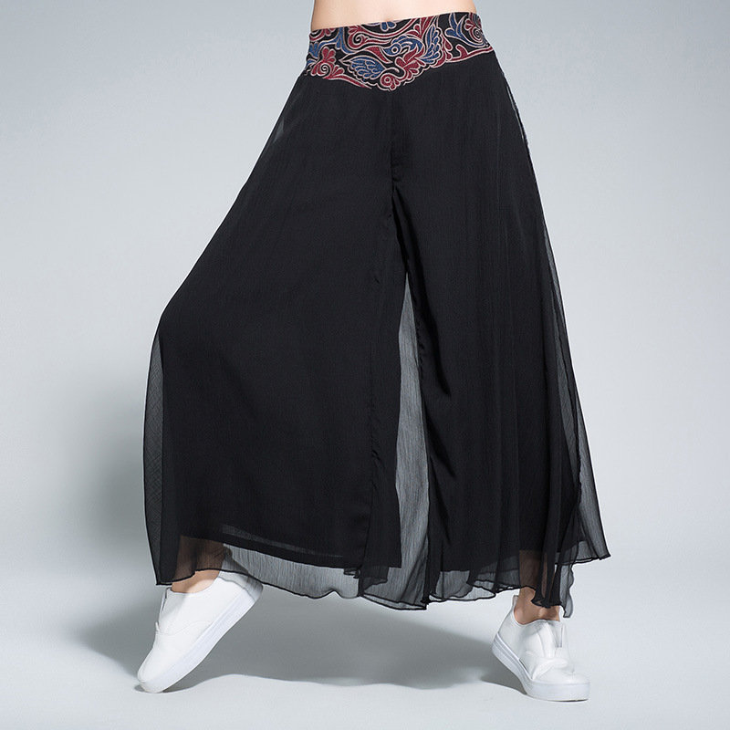 Ethnic Embroidery Patchwork Layered Wide Leg Women Pants