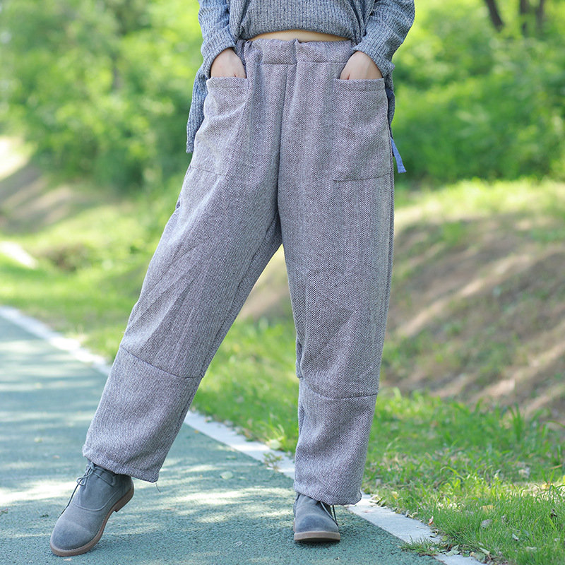 Casual Loose Solid Grey Big Pockets Women Wide Leg Pants