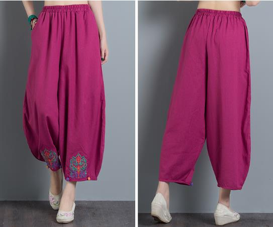 Vintage Embroidery Casual Loose Women Wide Leg Pants