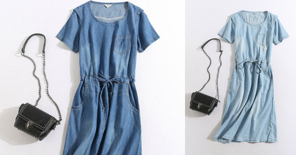 Denim Pocket Short Sleeve O-neck Casual Dresses