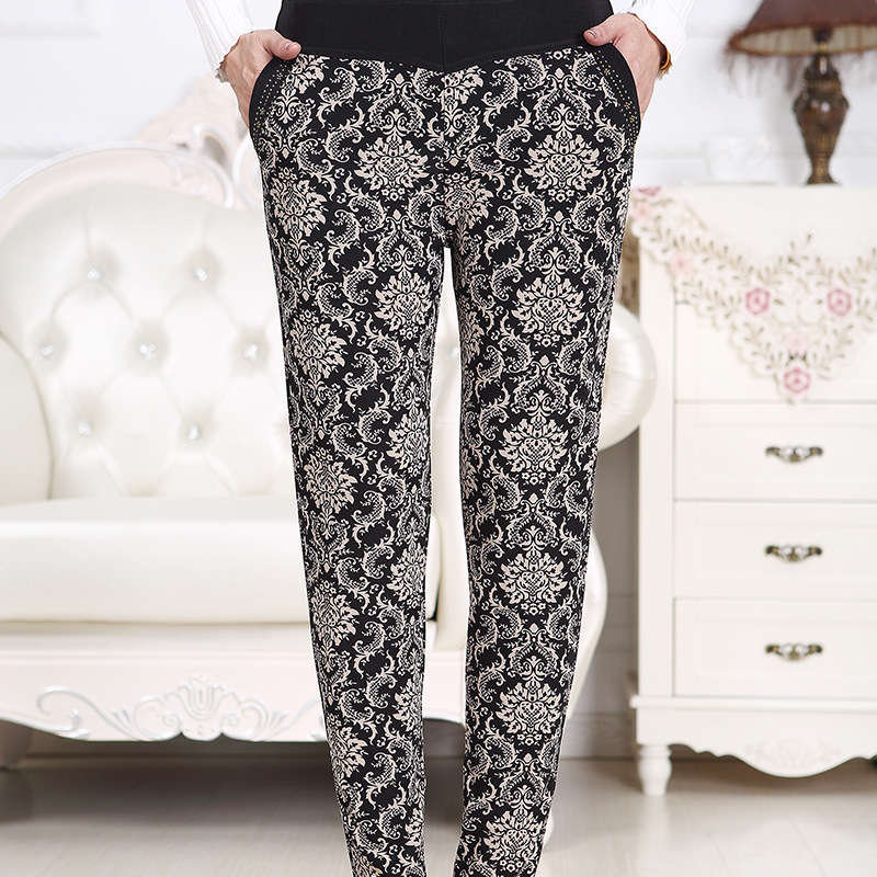 Ethnic Print Patchwork Elastic High Waist Women Pants