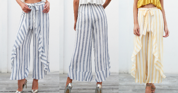 Vintage Vertical Striped Pleated Broad Leg Pants