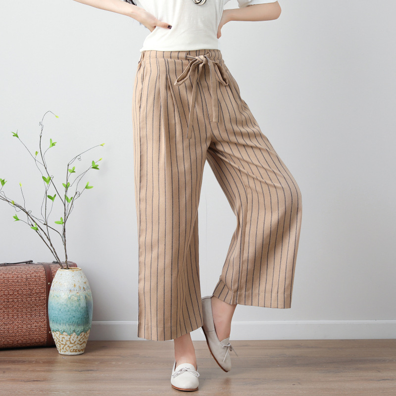 Stripe Wide Leg Drawstring Waist Casual Pants