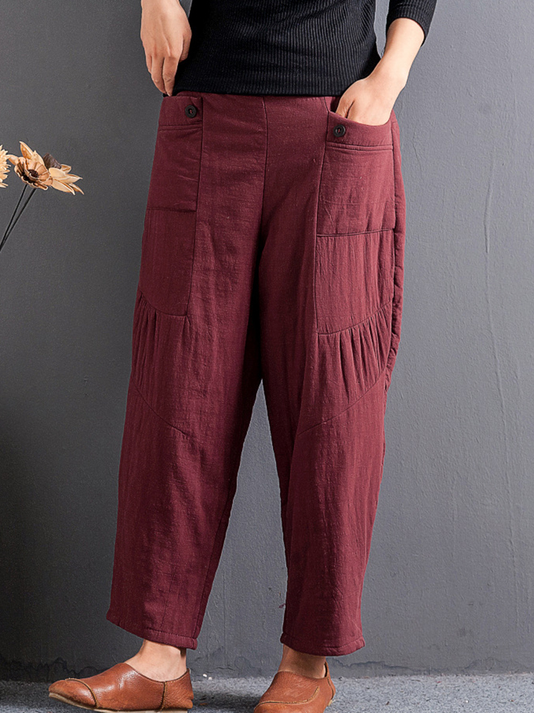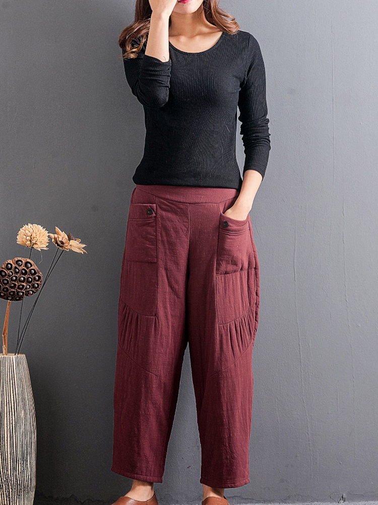 Casual Solid Color Patchwork Elastic Waist Women Harem Pants