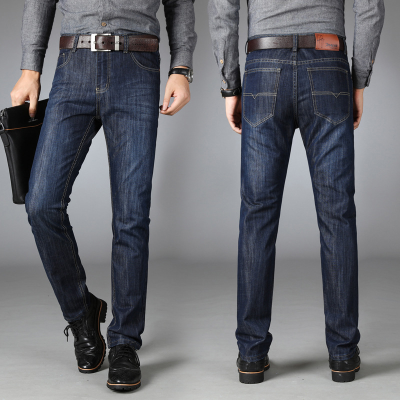 Mens Business Loose Mid Rise Muti Pockets Casual Jeans Pants