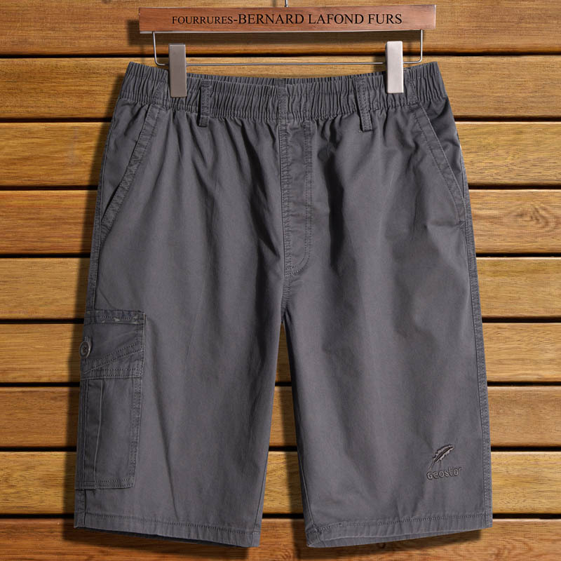 Mens 100%Cotton Breathable Solid Color Elatic Waist Casual Shorts Plus Size Loose Shorts