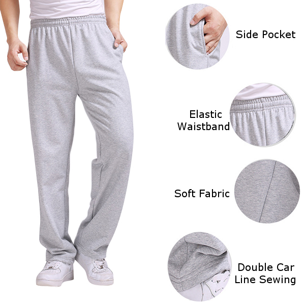 Casual Loose Cotton Straight Leg Fleece Thick Bodybuilding Sport Pants For Men