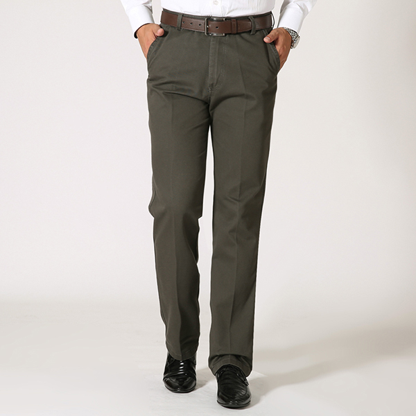 Mens Business Cotton Breathable Trousers Straight Leg Solid Color Casual Pants