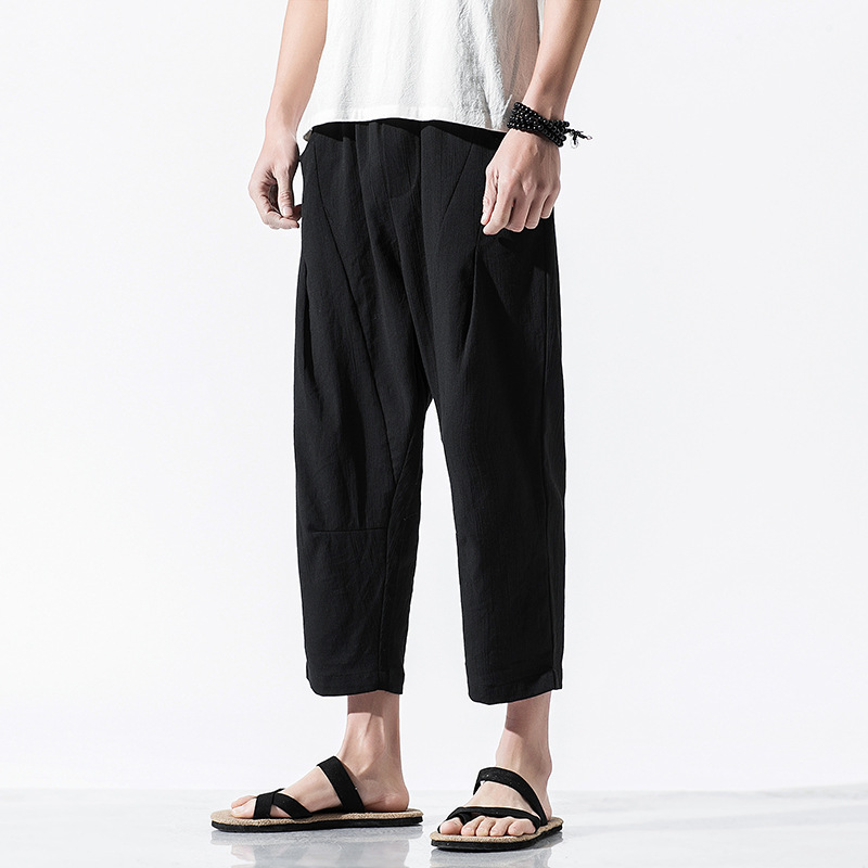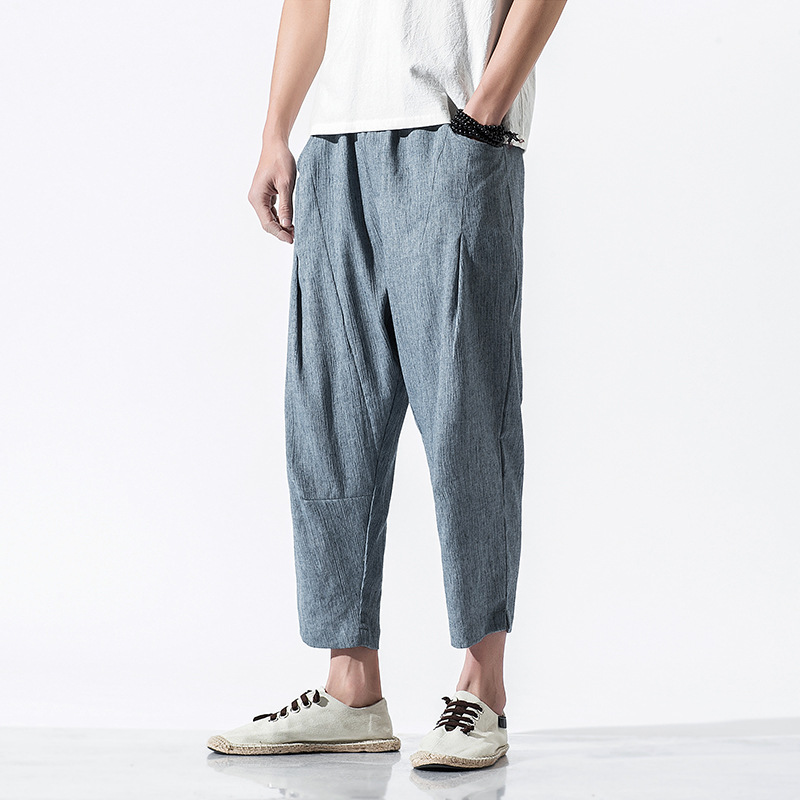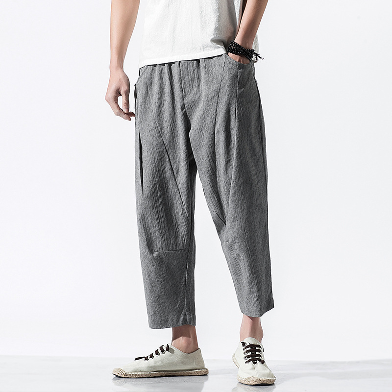 Mens Chinese Style Retro Casual Pants Cotton Linen Loose Beathable Pants