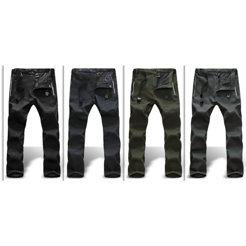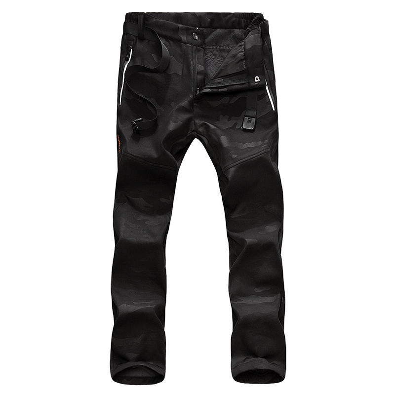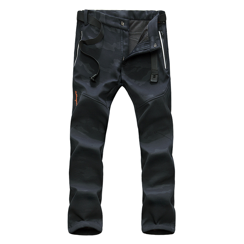 Men's Camouflage Outdoor Soft Shell Breathable Windproof Trousers Winter Fleece Thickening Pants