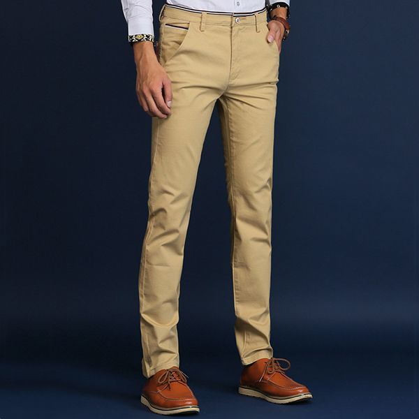 Mens Brief Style Breathable Elastic Slim Fit Casual Business Straight Pants