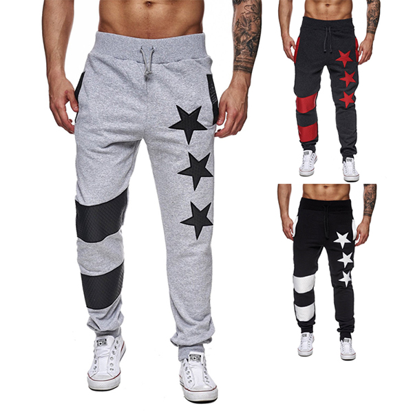 Mens Sport Pants Elastic Waist Drawstring Stars Pattern Casual Sportwear