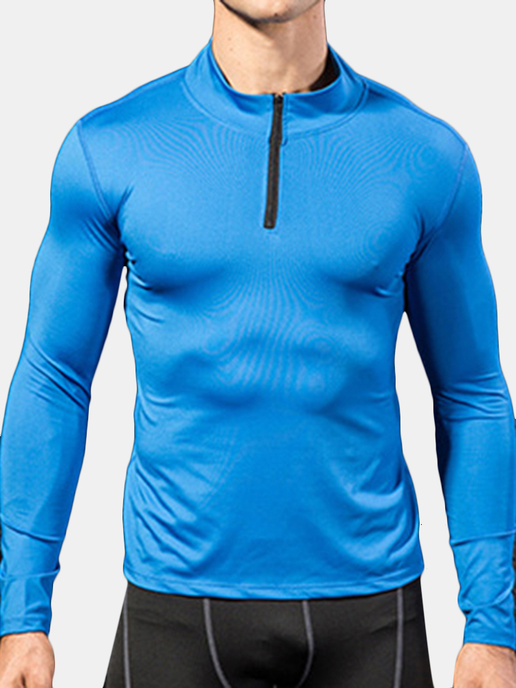 Men Thick Velvet Long Sleeve Running Collar Half Zip Quick Dry Sport Solid Color T-shirt Tops