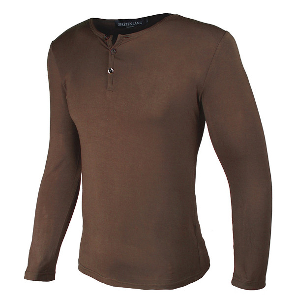 Household Casual Botton Collar T-shirt Round Neck Long Sleeved T-shirt For Men