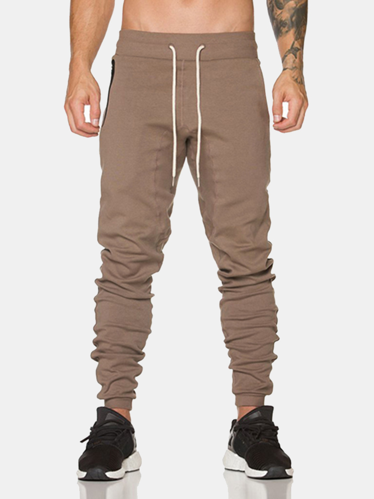 Mens Breathable Elastic Waist Drawstring Slim Fit Joggers Casual Sport Pants