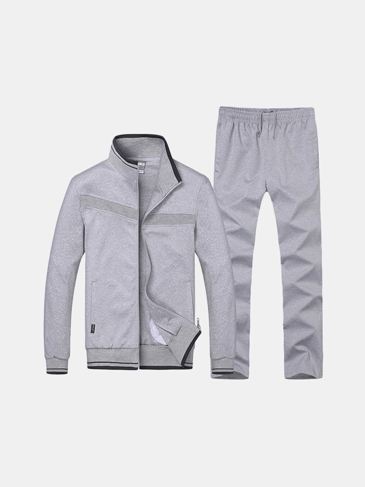 Mens Casual Sport Suits Solid Color Stand Collar Zip Up Hoodies Elastic Waist Joggers Sport Pants