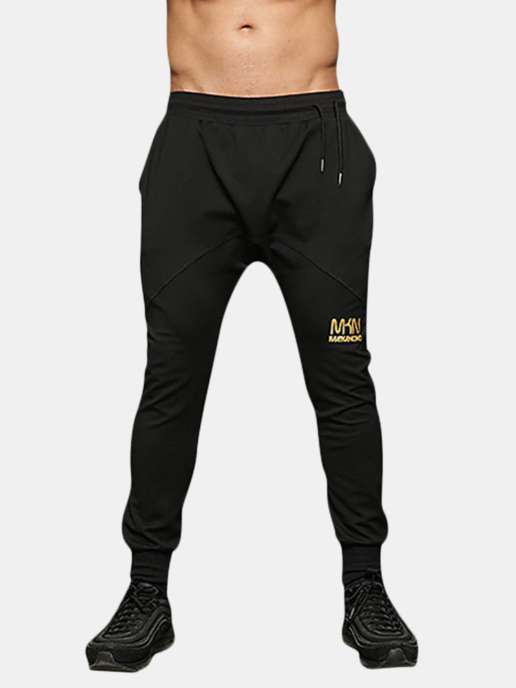 Mens Black Elastic Waist Drawstring Solid Color Slim Fit Casual Cotton Sport Pants