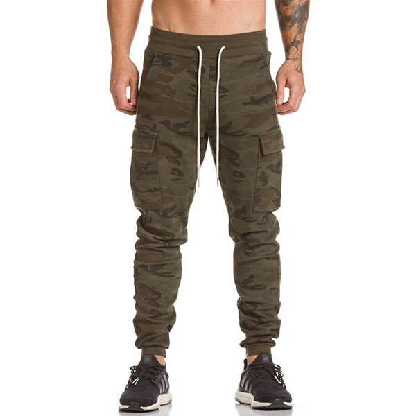 Mens Sport Pants Elastic Waist Drawstring Soild Color Casual Cotton Trousers
