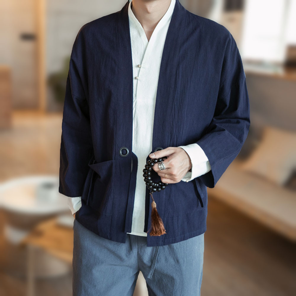 Men Retro Dsigen Thin Loose Solid Color Cotton Sun Protection Coat Cloak